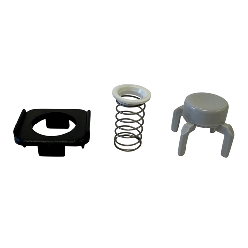 4 piece Reset Button assembly includes button, bracket, sleeve and spring. Black Framed Button for Stainless Steel exterior Models 100SSE and 300SSE.